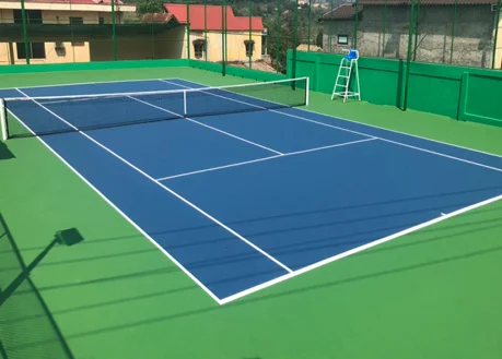 Sơn sân tennis 6 lớp có Sơn Cao Su Chống Nứt CUSHION MIXSPORTS trên nền ciment.